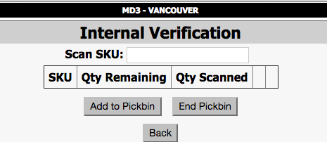 - Start scanning your first product item by either the UPC or SKU that you want to fill that bin.