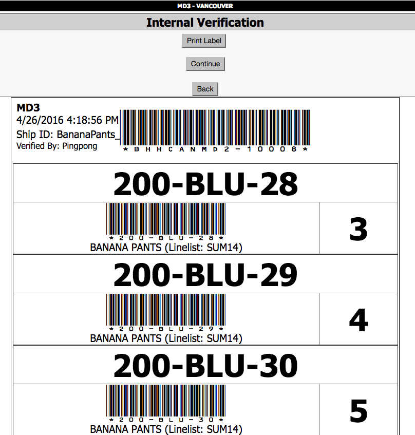 - Click Continue to do the next box. It will bring you back Scan SKU page, to start scanning your next SKU's until all products are scanned.