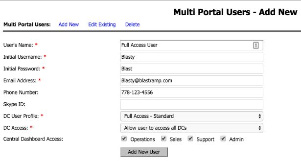 - Initial Username:* The name which will be used for login - Do not use SPACES or a username used for an account for another DC/Portal
