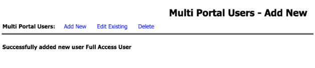- Click Add New User and a message will display you have Successfully added new user Full Access User.