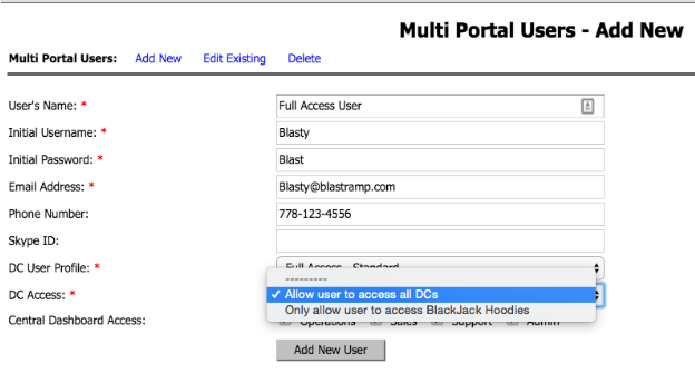 - DC Access:* Allows user to access all DC's or just one.