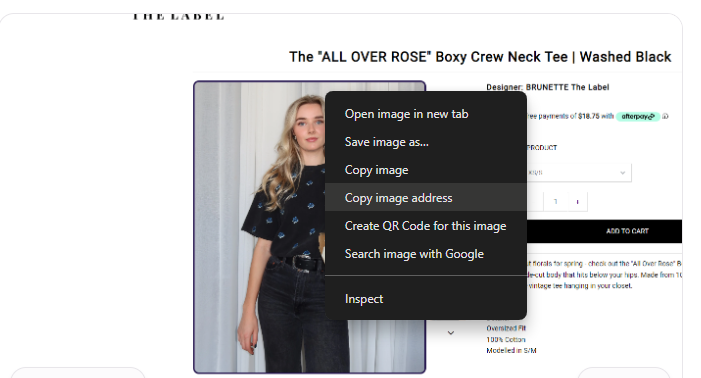 1. Find the image on your website that you wish to use and right click on image and select "Copy Image Address"