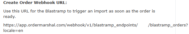 Collect Webhook from Order Marshal and email help@blastramp.com to insert into the configuration to enable toe webhook
