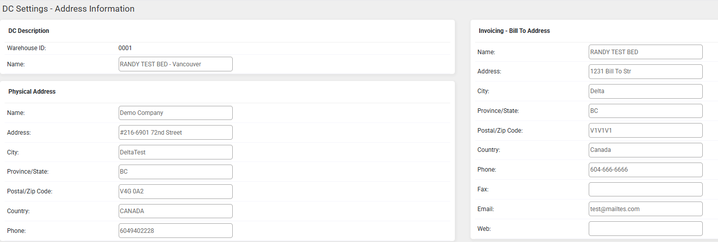 Warehouse Number (Found in Blastramp Advanced > Settings/Administration >DC Settings > Address information